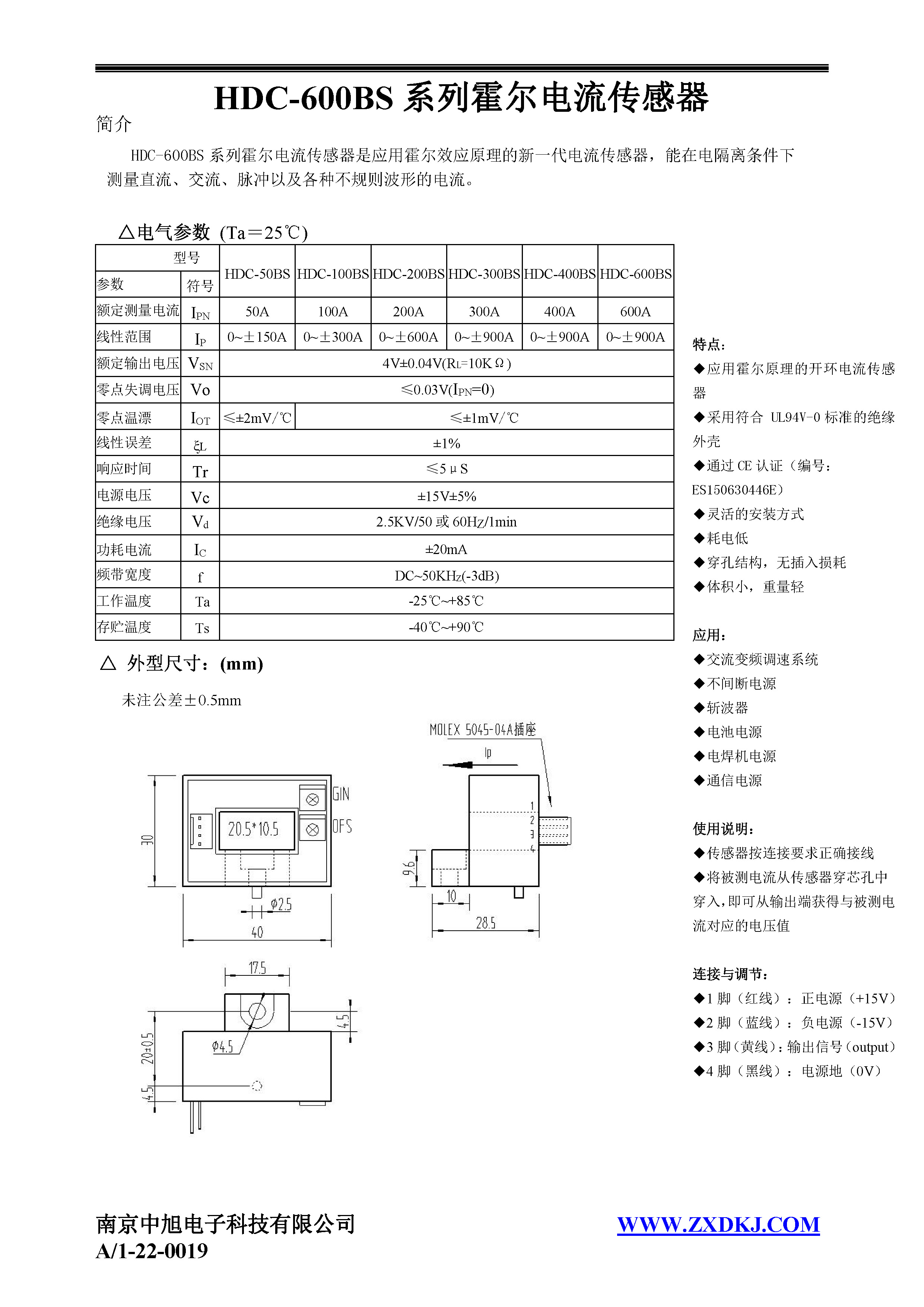 HDC-600BS系列霍爾電流傳感器是應(yīng)用霍爾效應(yīng)原理的新一代電流傳感器,能在電隔離條件下測量直流、交流、脈沖以及各種不規(guī)則波形的電流。